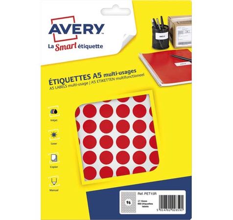 Compatible avec toute imprimante laser, jet d'encre, copieur. Idéale pour marquer vos documents : planning, inventaires, plans, etc. Feuille format A5 présentées sous sachet. Modèles et logiciels gratuits sur www.avery.fr