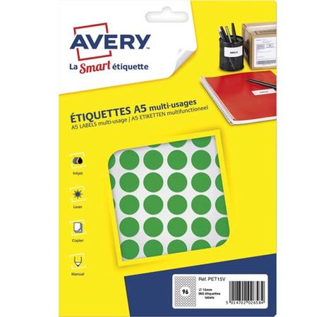 Compatible avec toute imprimante laser, jet d'encre, copieur. Idéale pour marquer vos documents : planning, inventaires, plans, etc. Feuille format A5 présentées sous sachet. Modèles et logiciels gratuits sur www.avery.fr