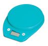 Pèse-lettes 5 kg. Bleu. Alimentation par pile AA (2 piles fournies). Boîtier plastique résistant aux chocs. Mise hors service et mise à zéro automtiques. Une seule touche On-Off-Tare. Touche séparée pour commuter l'unité de poids. Plateau de pesée diamètre 15 cm. Charge minimum 2 g. Division 1 g.