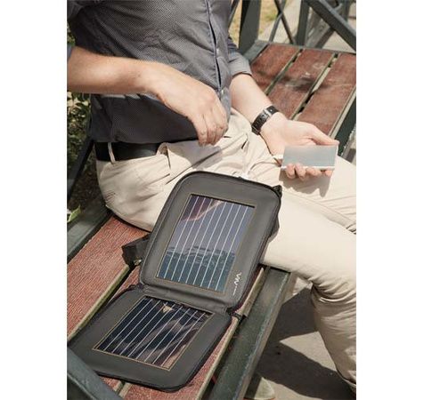 Le Solar Pocket Pro est une pochette à bandoulière innovante, en cuir synthétique, qui, une fois ouverte, se transforme en chargeur solaire. Une grande poche zippée intérieure, amovible et équipée d'un cordon, permet de ranger ses affaires personnelles et de les garder sur soi pendant l'opération de charge. Une petite poche extérieure, à l'arrière du Solar Pocket Pro, permet de ranger et de connecter la batterie externe.