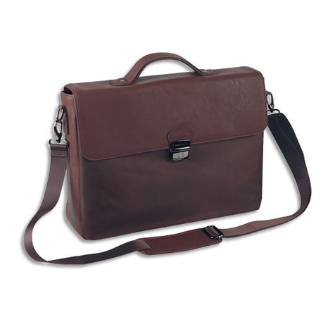 Cartables pour ordinateur 15,6" - En simili cuir et polyester, 2 soufflets, 2 compartiments, 3 poches intérieures, 1 pochette moussée spéciale ordinateur et 1 poche extérieure. Accessoires chromés noirs, bandoulière, sangle trolley et pieds de renfort.