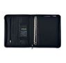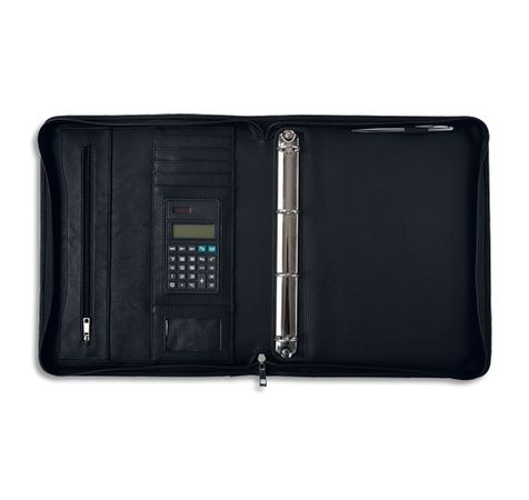 En bi-matière noir. Livré avec 1 calculatrice, 1 stylo, 1 bloc-notes.