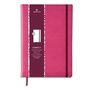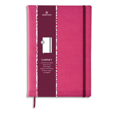 Couverture PU souple coins arrondis. Intérieur cousu permettant une ouverture 360°. Fermeture élastique et ruban-marque page de couleur assortie à l'élastique. Page de garde avec imprimé différent selon le coloris de la couverture. Papier ivoire 100 g, 200 pages lignées et numérotées, dont 1 page de titre à cocher et 1 page Index.