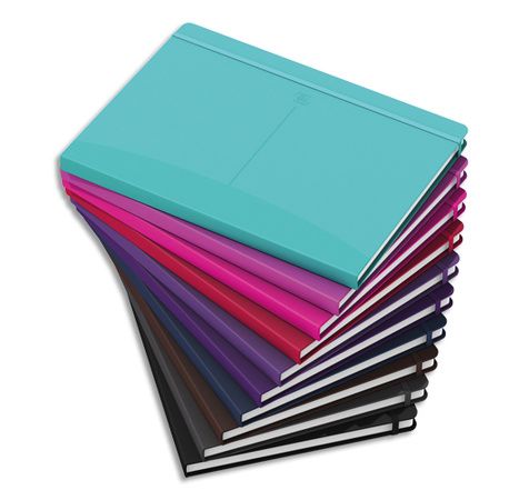 Couverture en polyuréthane rigide. Avec relief sobre et toucher soyeux. Réglure grise quadrillée 5x5 margée ou lignée 6 mm margée.