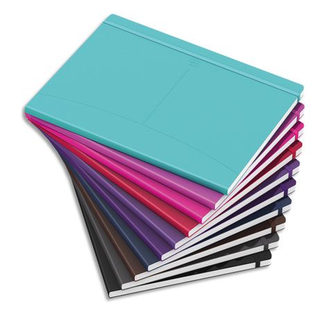 160 pages. Reliure brochure. Courverture en polyuréthane souple avec relief sobre et toucher soyeux. Réglure grise quadrillée 5x5 margée ou lignée 6 mm margée. Fermeture par élastique brillant assorti à la couverture et marque page. Papier 90 g extra blanc Optik Paper®.
