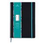 Couverture PU souple coins arrondis. Intérieur cousu permettant une ouverture 360°. Fermeture élastique et ruban-marque page de couleur assortie à l'élastique. Page de garde avec imprimé différent selon le coloris de la couverture. Papier ivoire 100 g, 200 pages lignées et numérotées, dont 1 page de titre à cocher et 1 page Index.