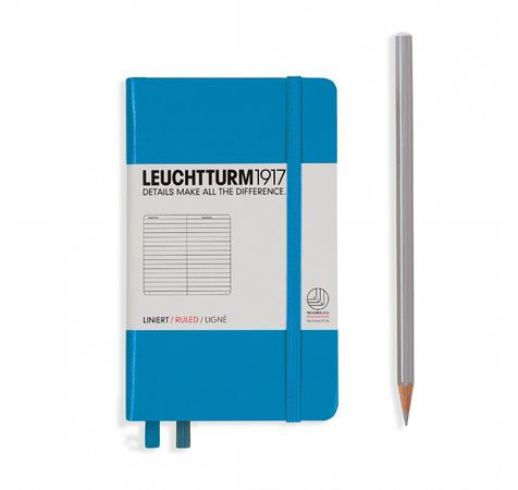 CARNET POCKET (A6) COUVERTURE RIGIDE, 185 PAGES NUMÉROTÉES, LIGNÉ, AZUR