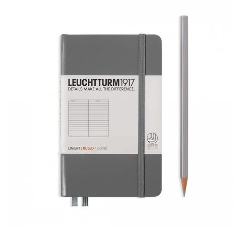 CARNET POCKET (A6) COUVERTURE RIGIDE, 185 PAGES NUMÉROTÉES, LIGNÉ, ANTHRACITE