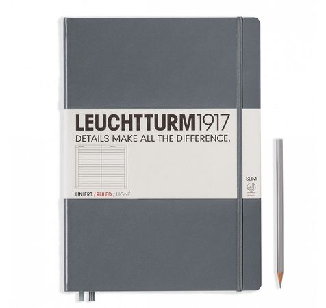 CARNET MASTER SLIM (A4+) COUVERTURE RIGIDE, 121 PAGES NUMÉROTÉES, LIGNÉ, ANTHRACITE