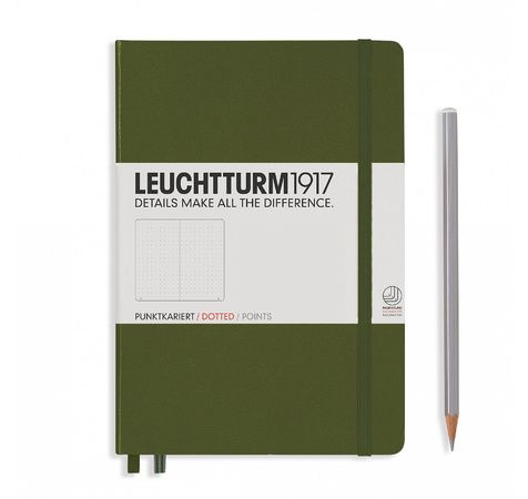 CARNET MEDIUM (A5) COUVERTURE RIGIDE, 249 PAGES NUMÉROTÉES, POINTILLÉS, ARMY