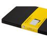 Les dernières 16 pages sont détachables et, à l'intérieur, il y a une large pochette pour gardes feuilles et feuillets, contenant un texte qui raconte l'histoire de Moleskine. Papier sans chlore, couleur ivoire, 70g/m2, pages lignées.