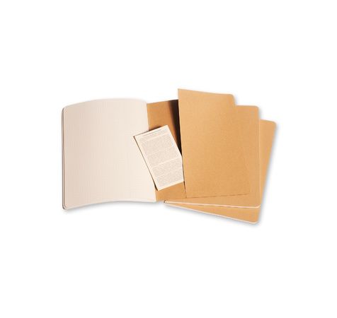Les dernières 16 pages sont détachables et, à l'intérieur, il y a une large pochette pour gardes feuilles et feuillets, contenant un texte qui raconte l'histoire de Moleskine. Papier sans chlore, couleur ivoire, 70g/m2, pages quadrillées