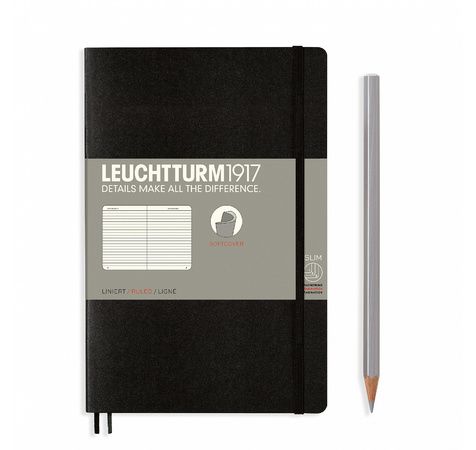 CARNET PAPERBACK (B6+), COUVERTURE SOUPLE, 123 PAGES NUMÉROTÉES, LIGNÉ, NOIR
