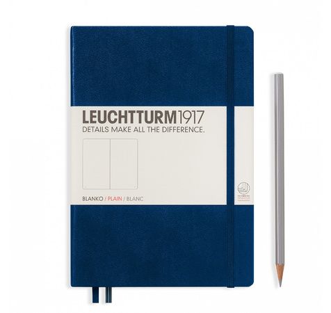 CARNET MEDIUM (A5) COUVERTURE RIGIDE, 249 PAGES NUMÉROTÉES, BLANC, BLEU MARINE