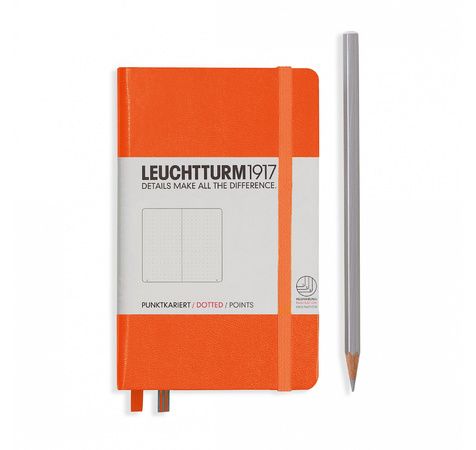 CARNET POCKET (A6) COUVERTURE RIGIDE, 185 PAGES NUMÉROTÉES, POINTILLÉS ORANGE