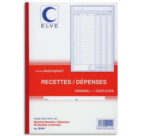 Manifold Autocopiant Recette/Dépense Format 21X29,7cm, 50 Feuillets Dupli