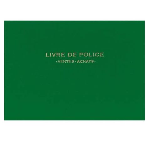 Livre de police, métaux précieux pour magasiniers, grossistes et détaillants. 200 pages. Folioté, titre frappé or. Intérieur papier registre supérieur 100 g/m2. Imprimé bleu. Couverture pleine toile couleur.