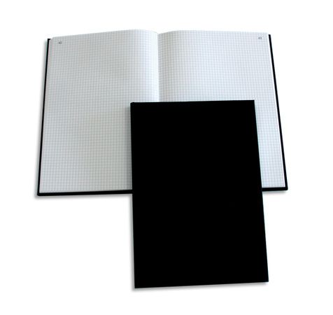 Registre toilé folioté, format 21 x 29,7 cm. 200 pages quadrillé 5/5. Noir