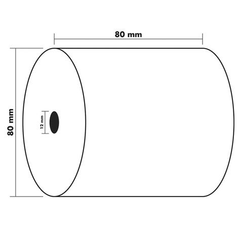 Bobine caisse standard 80x80x12mm, 76 mètres, papier thermique 1 pli