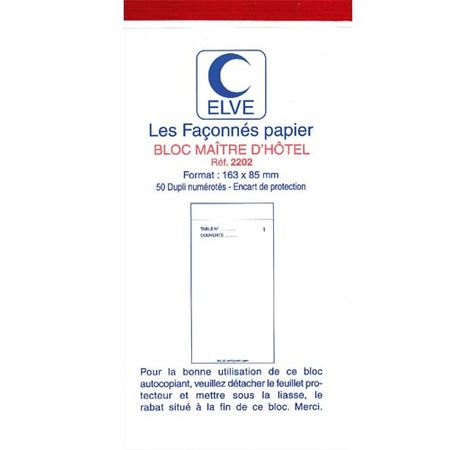 Bloc Maitre D'Hotel 50 Feuillets 75X150 mm 50/2 Autocopiant