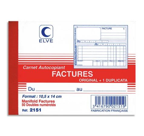 Manifold Autocopiant Facture Format 10,5X14cm, 50 Feuillets Dupli