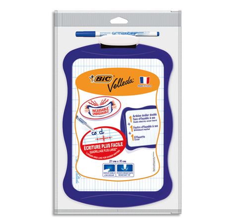 Ardoise Velleda Effaçable À Sec 20X31cm Double Face (Unie/Seyès). Avec Feutre Bleu 1721, Effaçette