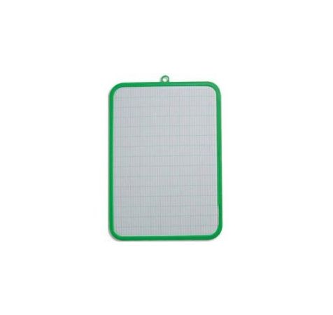 Ardoise blanche plastique 19x26 cm. 1 face unie. 1 face séyès. effaçable à sec