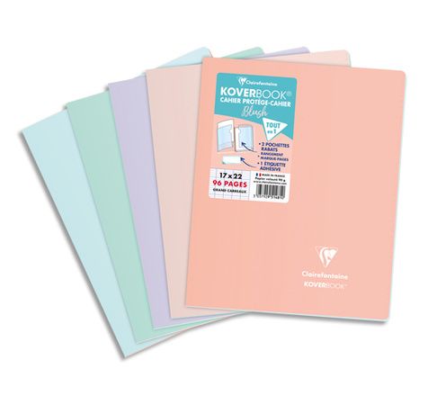 Cahier Koverbook BLUSH piqué PP bicolore opaque 17x22cm 96p séyès coloris assortis.