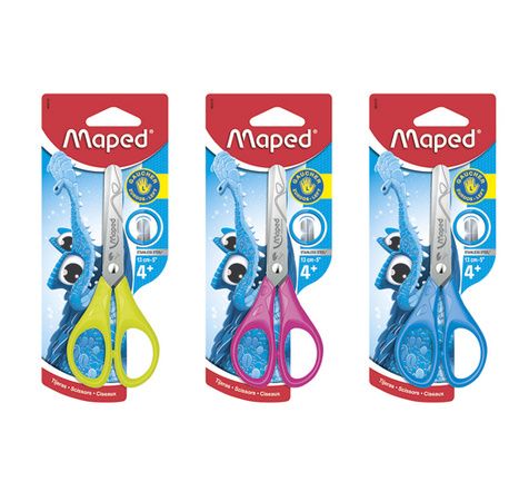 Lames 13 cm en acier inoxydable graduées. Bouts ronds Ø 10 mm top sécurité. Laoloris assortis : bleu, rose, vert.