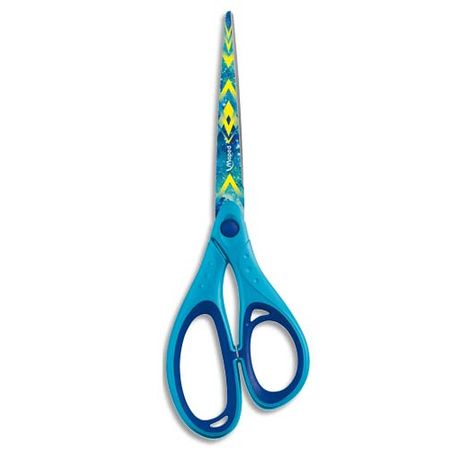 Anneaux ambidextres avec matière souple à l'intérieur des anneaux : confort optimal. Bouts ronds (13 et 16 cm). Lames en acier inoxydable, impression inaltérable avec qualité photographique. Présentés sous blister. Décors assortis.