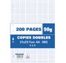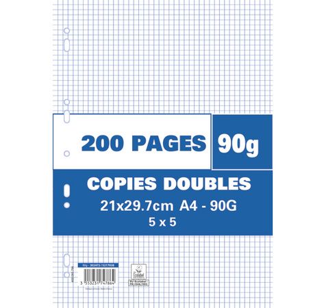 Etui Filmé Copies Doubles Perforées 200 Pages 90G 5X5 21X29,7 Papier Blanc