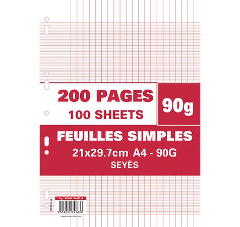 Etui de 200 copies simples perforées Seyes 90gr A4