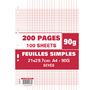 100, 200 ou 400 pages perforées. 9 trous et coins arrondis. Réglure grands carreaux Seyès (2 couleurs) ou quadrillé 5x5. Papier 70 g ou 90 g.