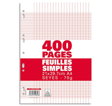 Etui de 400 copies simples perforées Seyes 70gr A4