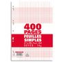 100, 200 ou 400 pages perforées. 9 trous et coins arrondis. Réglure grands carreaux Seyès (2 couleurs) ou quadrillé 5x5. Papier 70 g ou 90 g.