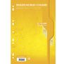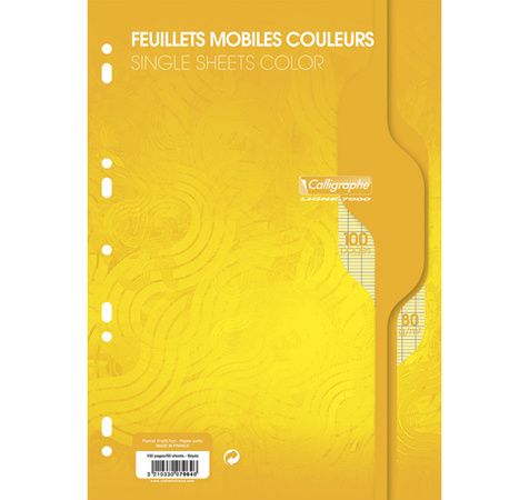 100 pages perforées. Réglure Seyès grands carreaux. Feuillets mobiles couleur 80 g. Sous film avec encart.