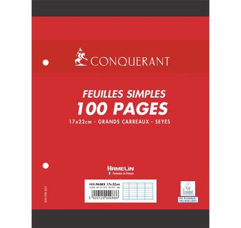 Lot de 10 paquet 50 feuillets mobiles 17x22cm 90g blanc éco séyès NF88