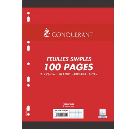 Feuilles Mobiles 21X29,7 cm 100 Pages Grands Carreaux Blancs 90G