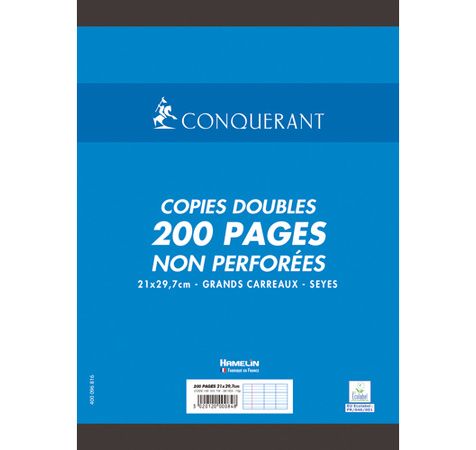 Copies Doubles Non Perforées Blanches 21X29,7cm 200Pages Seyes 70G - Sous Étuis Conquerant Sept