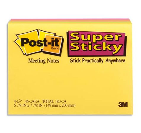 POS L/4B STICKY NEON ASS203X15 6845-SSP 744853 Lot de 4 blocs de 45 notes repositionnables Assortis Super Sticky 200x149mm 20,59 € TTC