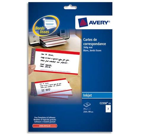 AVE P/75 CTE 210X99 JET ENC C2358-25I 736297 Pochette De 75 Cartes De Correspondance 210X99mm Quick&Clean 260G Impression Recto Verso 45,01 € TTC