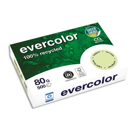 Papier 80 g, fabrication à partir de 100 % de fibres recyclées (Fibres Cellulosiques de Récupération). Sans désencrage, sans azurant optique, ni traitement au chlore. Qualité d'impression et passage machine identiques aux fibres vierges pour une parfaite utilisation en bureautique. Macule d'emballage transparente recyclable avec étiquette repositionnable permettant de multiples manipulations. Ramette de 500 feuilles, format A4 (21 x 29,7 cm). Conforme à la norme ISO 9706.