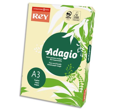 Ramette de 500 feuilles de papier couleur Adagio 80gr A3 Jaune Canari