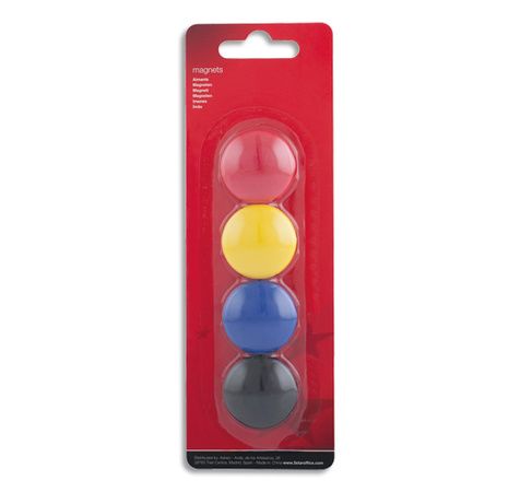 Boite de 4 aimants 32 mm ronds coloris assortis