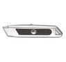 Cutter de sécurité auto-rétractable. Bi-matière : corps métal et grip de confort caoutchouc.