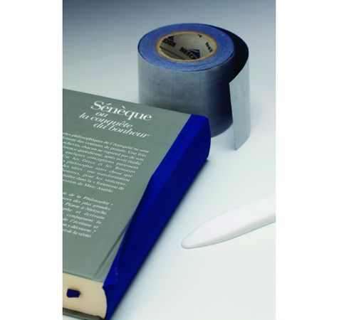 Toile de coton désacidifiée, adhésive : épaisseur 240μ, ph neutre. Idéal pour la confection de charnières, réparer le dos des livres, entoiler des dos de cartes géographiques, des plans ou autres documents. Existe en Noir et en blanc
