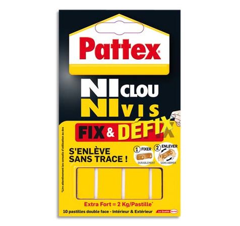 Fixation extra forte et maintien immédiat de 2 kg par pastille. Multi supports : intérieur et extérieur. Résiste aux variations de température et à l'humidité. Etui de 10 pastilles de 2 x 4 cm.