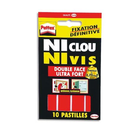 Fixation Ultra résistante de 2,75 kg par pastille, grâce à une technologie exclusive : la polymère surpuissante. Multi supports : intérieur et extérieur. Résiste aux variations de température et à l'humidité. Etui de 12 pastilles transparentes de 5 x 1,9 cm.