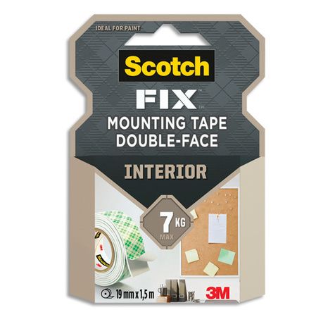 Adhésif double face mousse polyuréthane. Fixation intérieure. Fort pouvoir adhésif jusqu'à 900 g, même en environnement humide. Epaisseur 1,6 mm. Rouleau de 19 mm x 1,5 m.