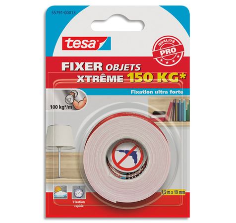 Adhésif de fixation double-face très fort et résistant pour une fixation en intérieure ou extérieure durable, sûre et rapide. Pour des objets plats jusqu'à 10 mm d'épaisseur. Non résistant aux UV. A protéger du contact direct de l'eau. Résistant à la température de -10°C à 50°C. Supporte jusqu'à 10 kg pour 10 cm d'adhésif.